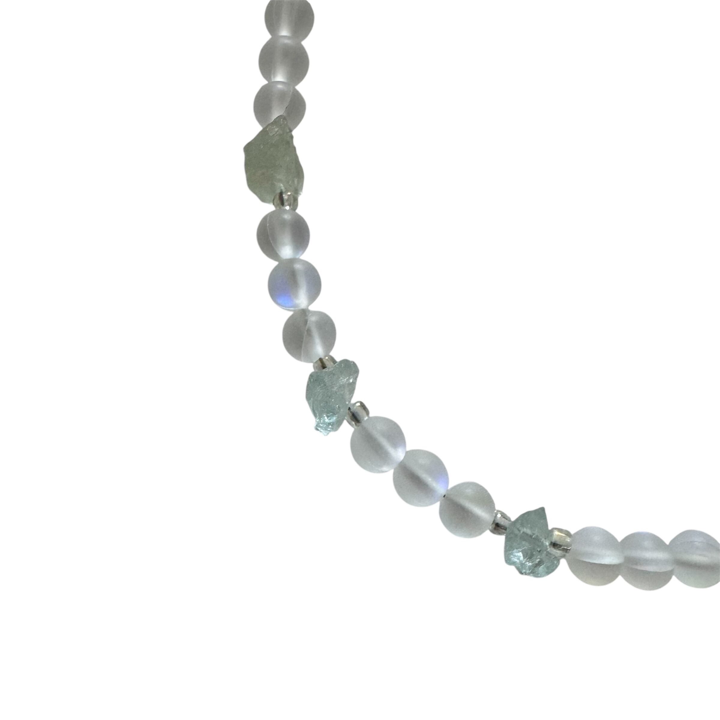 素材:合金・真鍮にコーティング、アクアマリン、ルナフラッシュ、ガラスビーズ