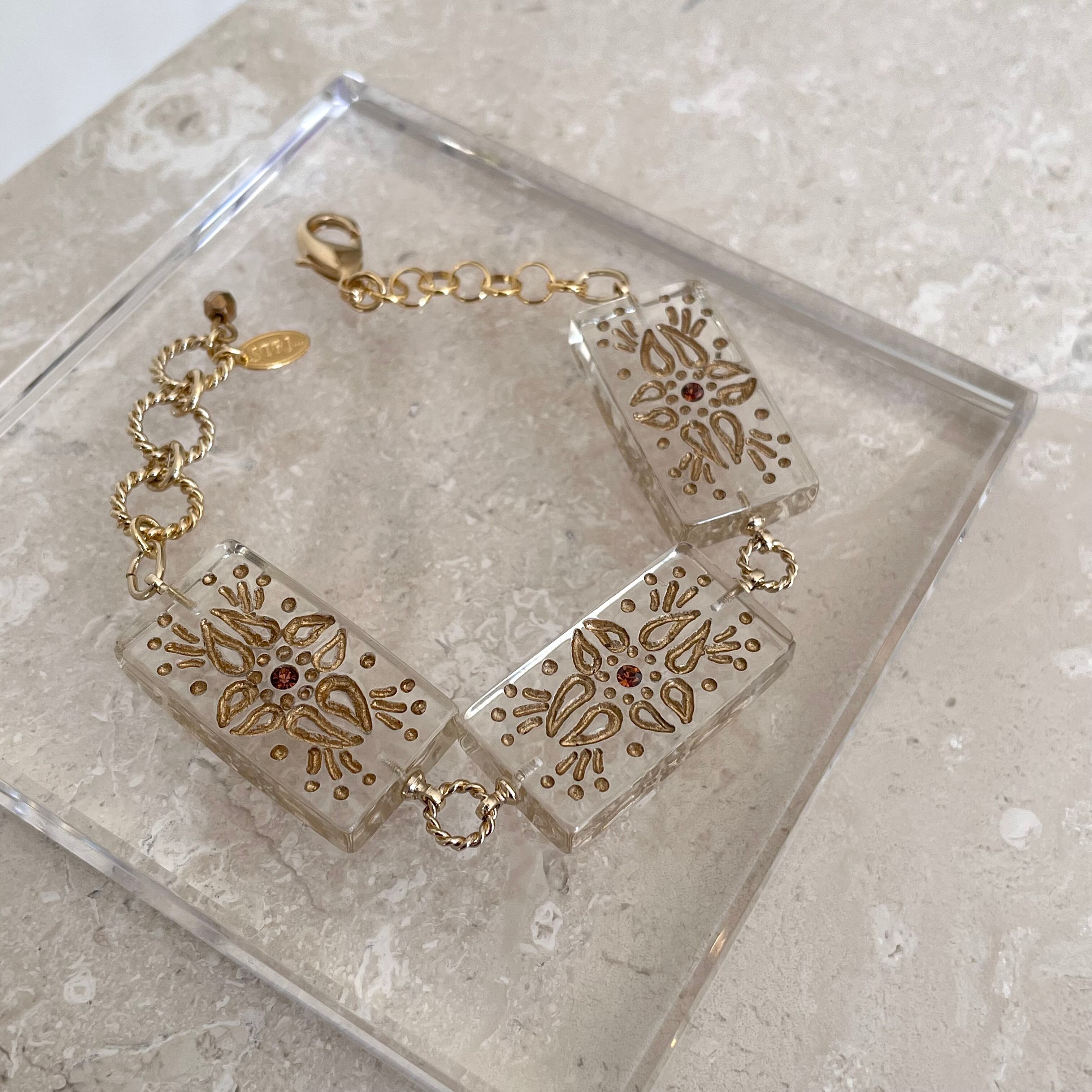素材:真鍮・合金にコーティング、樹脂、クリスタルガラスストーン、チェコビーズ