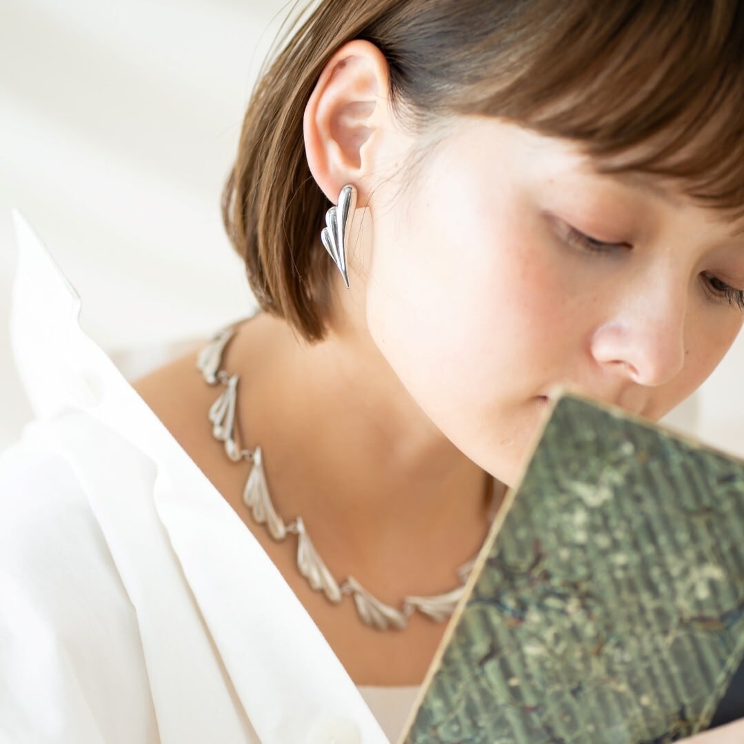 丸みとシャープさの両方を持ち合わせたフォルムで、フェイスラインが美しく見える流れるようなイヤリングに仕上げています。