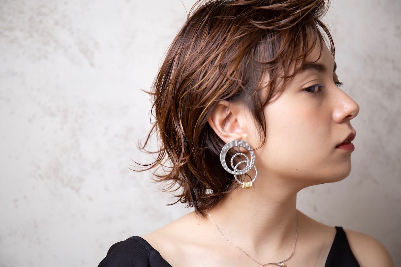 シルバーとゴールドのミックスカラーが存在感を際立たせてくれるピアスです。