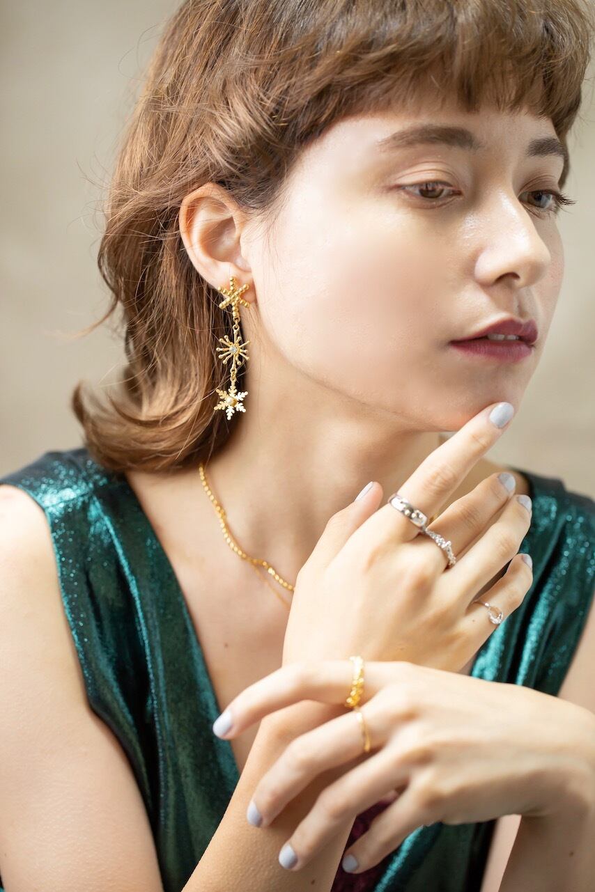 アンティークゴールドの優しい色付けで、ふわりとした柔らかな表情を描いたピアスです。